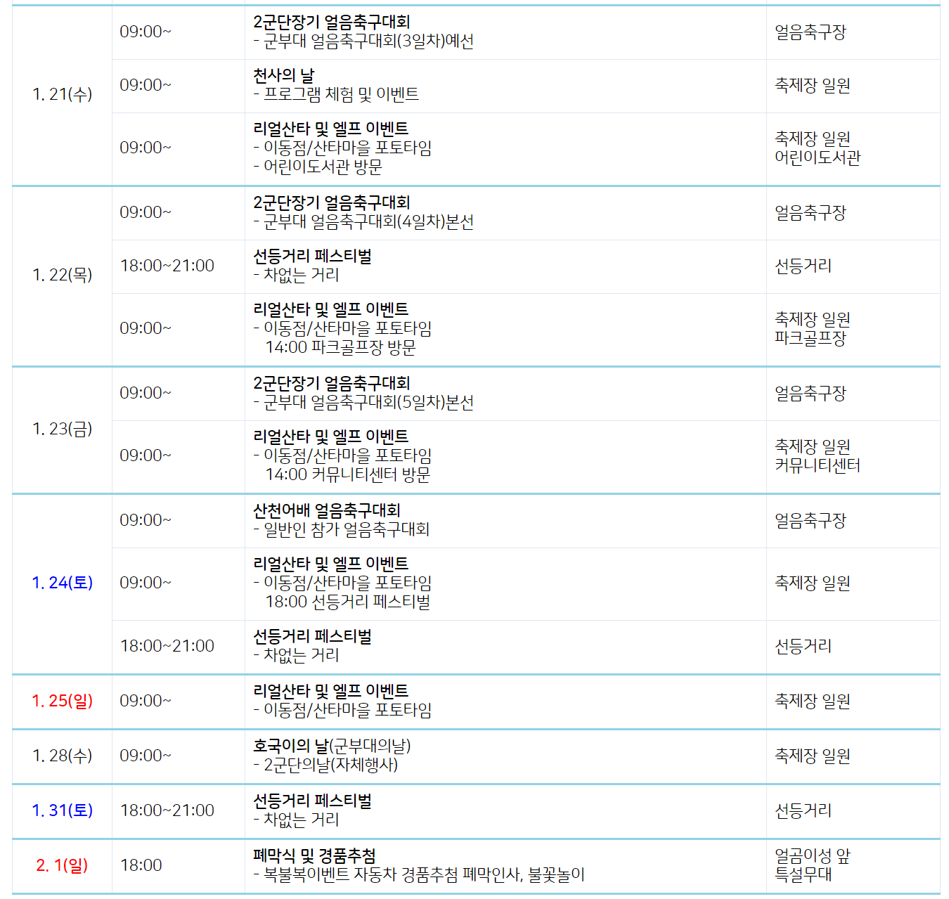 - 기간: 2026년 1월 10일(토) ~ 2월 1일(일) / 23일간