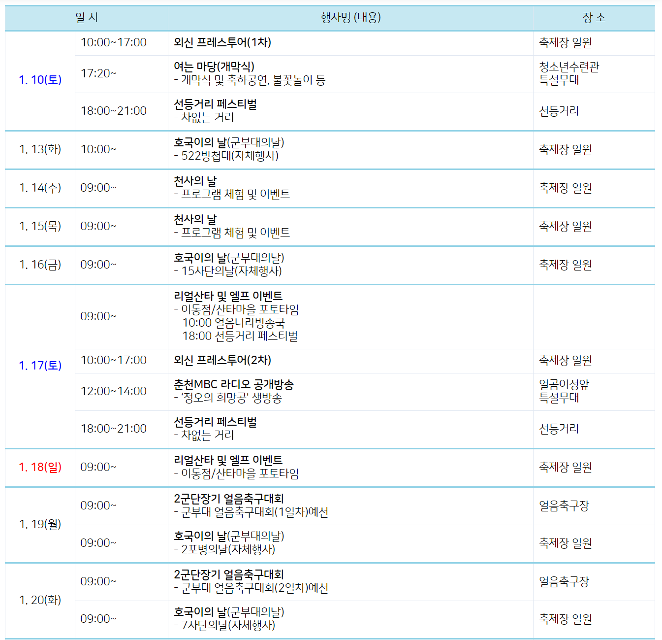 - 장소: 강원특별자치도 화천군 화천읍 일원